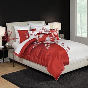 you're want to buy Introducing home textiles by Mikasa. Inspired by the elegant designs of the popular Mikasa dishware collections, now you can expand your favorite Mikasa styles into the rest of your home. The striking Pure Red celebrates an exotic maple leaf in graphic silhouettes of brilliant red and crisp luminescent white. The comforter features asymmetrical sides of red and white with contrasting maple leaf embroidery running down the border where the two colors meet. The shams are reversible, featuring either red embroidery upon white ground or vice versa. The white fashion pillow features red maple leaf embroidery while the boudoir features the reverse with its maple leaf embroidery at a slightly larger scale. The euro shams are simple in solid white, while the square pillow features asymmetrical sides of red and white with contrasting embroidery, similar to the comforter.