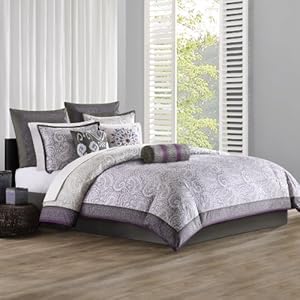 The Marrakesh Bedding collection is a beautiful modern abstract paisley pattern printed on soft, 100-percent cotton. The comforter is reversible with a pretty purple color on one side with a deep taupe boarder, and the reverse is the a soft grey and white abstract paisley pattern, once again printed on soft, 100-percent cotton. The comforter features a tackles finish, which offers a clean finish on your comforter without any stitching to distract from the beauty of this comforter. Most of the decorative accents include embroidery details.