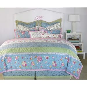 Tommy Hilfiger Emma collection features all over multicolor floral print sheets, a floral pieced comforter is a modern translation of a traditional all American quilt. The comforter reverses to a green foulard print. The Standard and King shams feature large aqua florals with quilted stripes and flange. The European Sham is an all over floral with a quilted flange. The dust ruffles are pieced floral quilted stripe and quilted floral. Decorative pillows add the finishing touch to this countryside bedding ensemble. Coordinating window treatments feature pole top design in the drapes and window valance, also available are coordinating Bath ensemble.